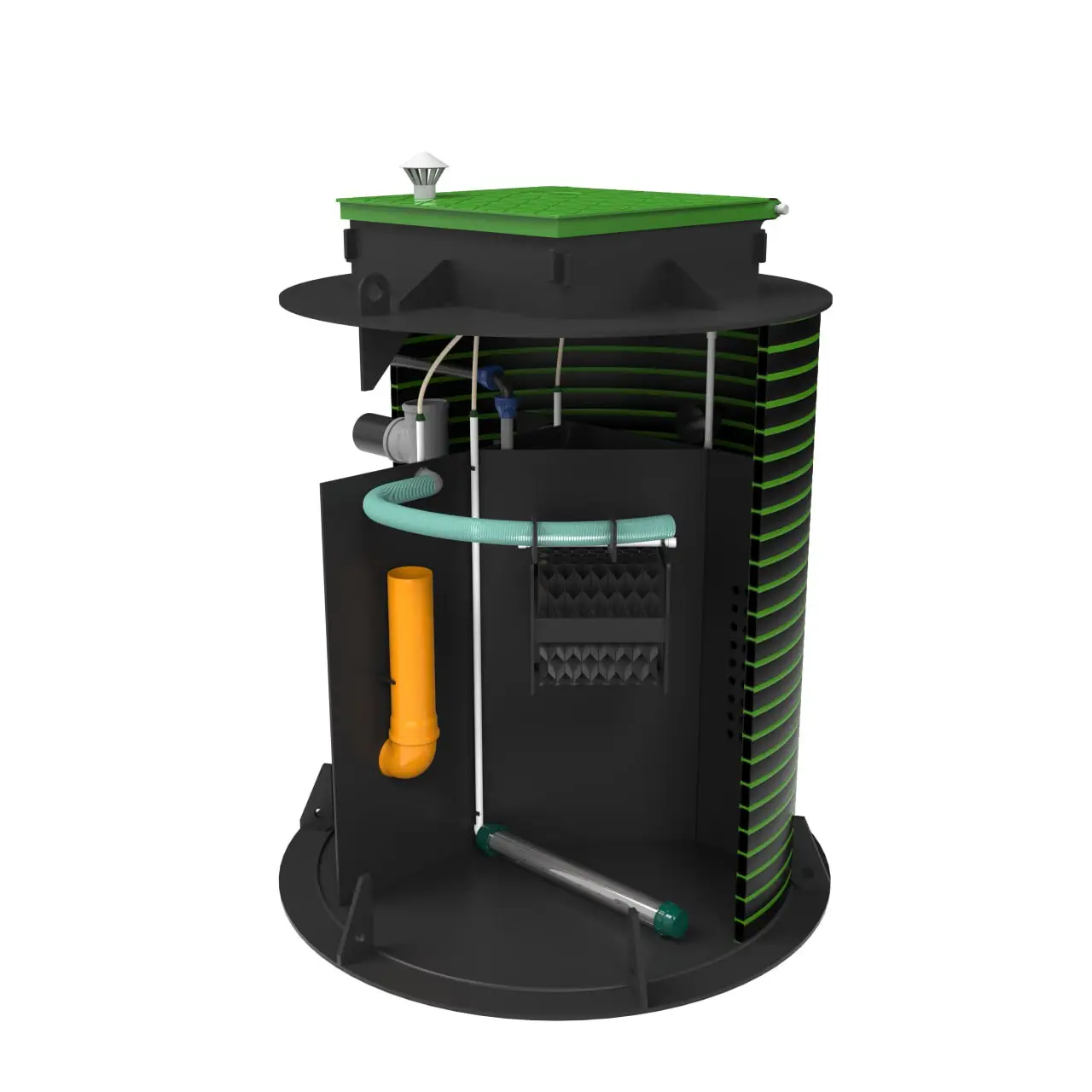 Конструктивно станция представляет собой многокамерную емкость из прочного, коррозионно-стойкого полиэтилена, соответствующую государственным стандартам. Внутри происходит последовательная очистка стоков, дополнительная обработка и стабилизация избыточного ила. Отвод очищенной воды может быть как самотечным, так и принудительным.