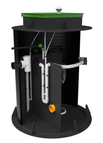 Конструктивно станция представляет собой многокамерную емкость из прочного, коррозионно-стойкого полиэтилена, соответствующую государственным стандартам. Внутри происходит последовательная очистка стоков, дополнительная обработка и стабилизация избыточного ила. Отвод очищенной воды может быть как самотечным, так и принудительным.