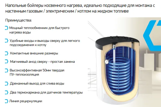 TESY EV 10S 120 60 Z PS – бойлер косвенного нагрева с улучшенным пластиковым кожухом на 114 литров. Модель имеет один высокоэффективный теплообменник. А биокерамическое внутреннее покрытие бака предотвращает от появления коррозии. Стоит отметить наличие анодной защиты, высокоплотной изоляции PU7, термометра и входа для рециркуляции. Данный водонагреватель специально разработан для подключения к газовому котлу.