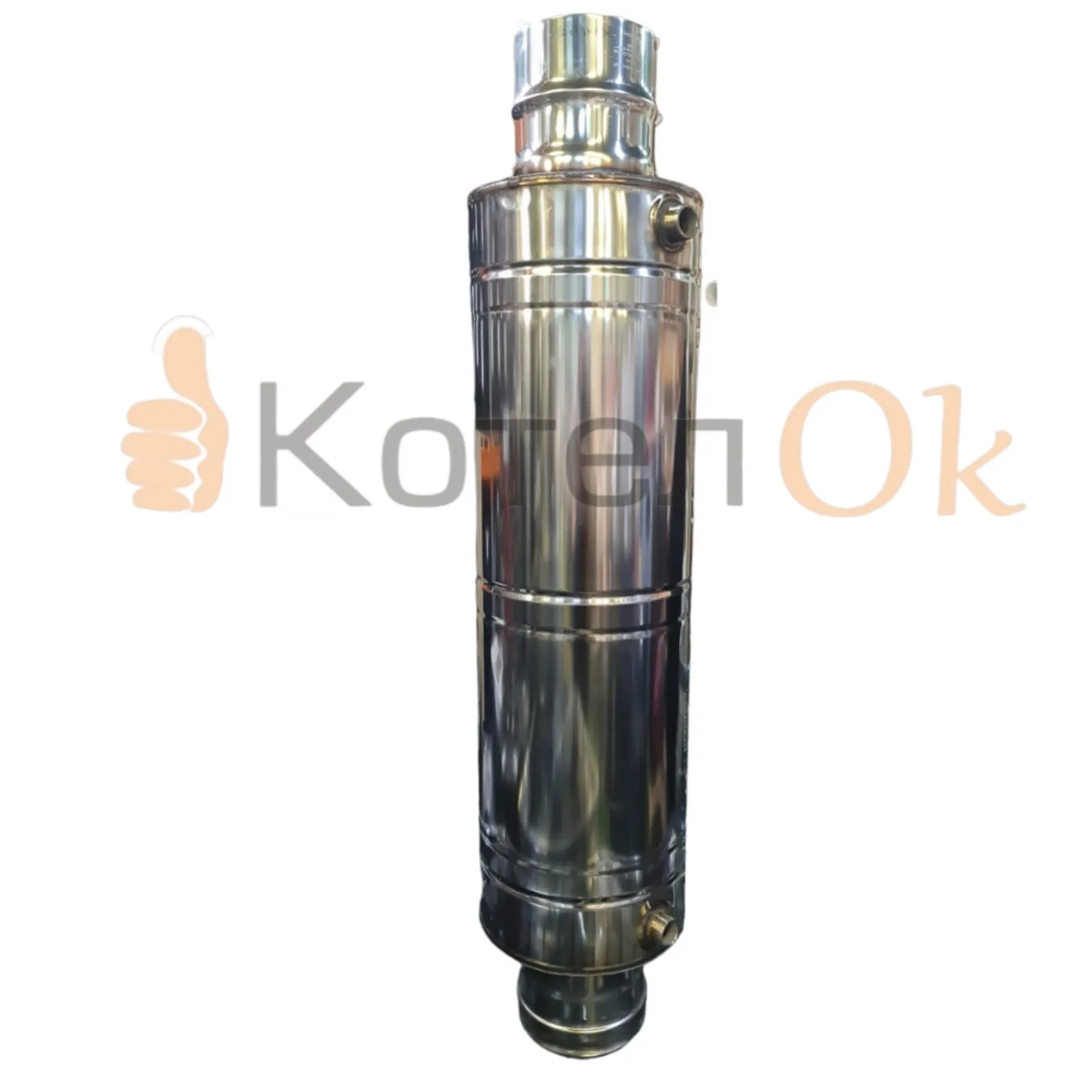 Теплообменник для бани 16л устанавливается в основании дымохода и служит для дистанционного нагрева воды в выносном баке (баке для регистра). Бак устанавливается выше уровня регистра и вода греется за счет естественной циркуляции. У теплообменника 2 штуцера с резьбой 3/4" для циркуляции воды. Вода греется за счет естественной циркуляции. Работает в паре с баком для регистра 60 л, 80л и 100 л.