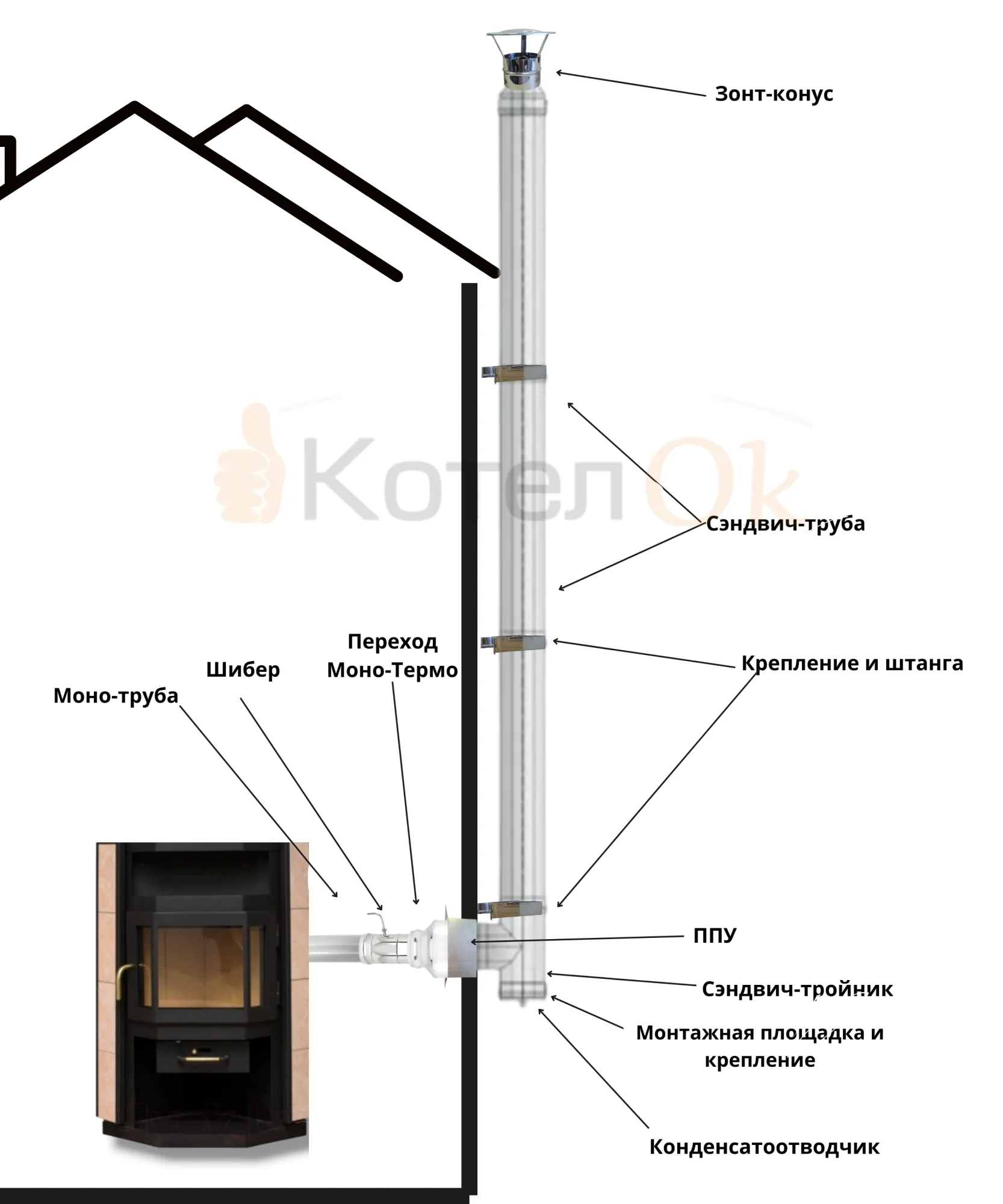 В сэндвич-трубе специализированный (жаростойкий) утеплитель