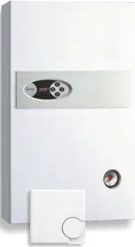 В заводскую комплектацию электрокотла серии входят манометр, комнатный регулятор температуры, циркуляционный насос и группа безопасности.