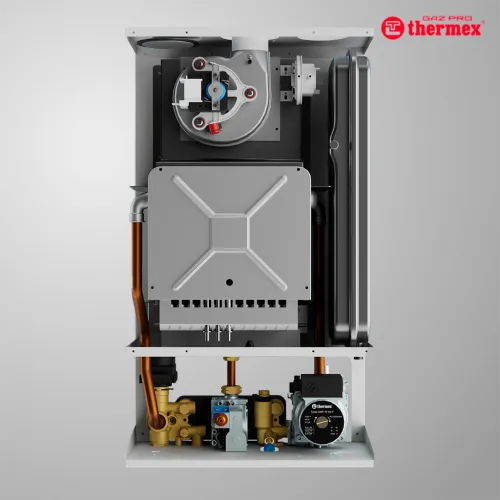 Газовый настенный котел Thermex Antares F10 (двухконтурный) обеспечивает мощность 10 кВт. Конструкция включает раздельные теплообменники, латунную гидравлическую группу и трехступенчатый насос, что гарантирует надежность и высокую эффективность эксплуатации.