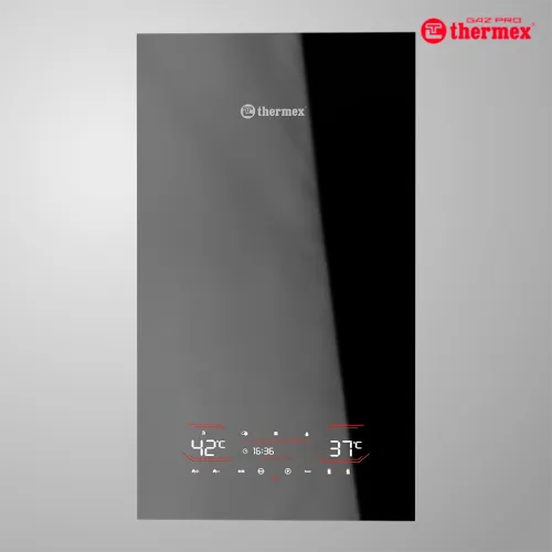 Сенсорная панель управления и информативный дисплей упрощают настройку и мониторинг работы устройства. Минималистичный дизайн с чёрной глянцевой окраской гармонично вписывается в современные интерьеры. Для корректной работы котла необходимо соблюдать максимальную допустимую длину трубопроводов.