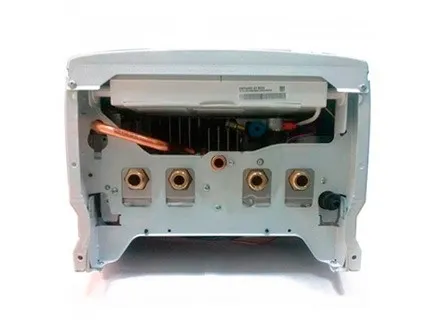 Двухконтурный котел серии оснащается двумя теплообменниками. Вода нагревается во вторичном пластинчатом теплообменнике из нержавеющей стали, при выходе из которого датчик фиксирует степень ее нагрева.