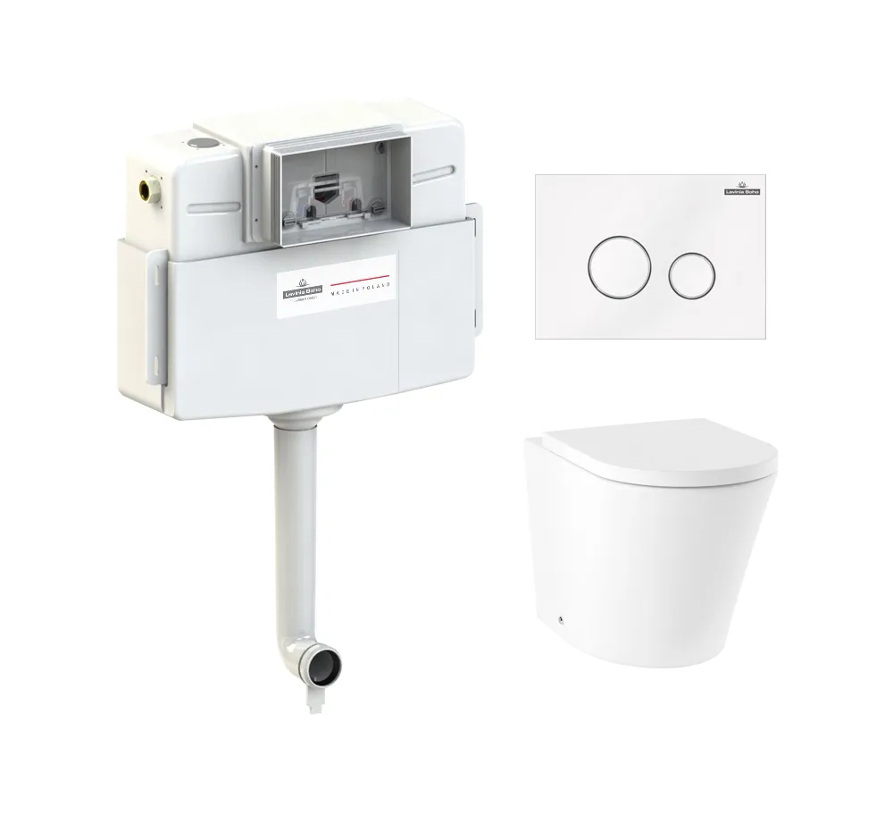 - 77060239 - Комплект инсталляции и унитаза 4 в 1 Lavinia Boho Relfix Biore (бачок скрытого монтажа Relfix 38020010; клавиша смыва Relfix 3805004W; приставной унитаз Biore 33040040; быстросъемное дюропластовое сиденье с медленно опускающейся крышкой и хромированными металлическими петлями (включено в артикул 33040040)