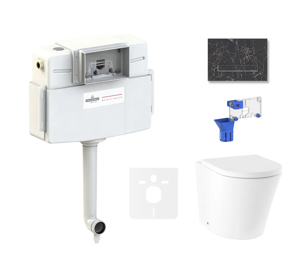 - 87551048 - Комплект инсталляции и унитаза 5 в 1 Lavinia Boho Relfix Biore (чаша приставного унитаза Biore 33044050; быстросъемное сиденье микролифт из прочного дюропласта с хромированными металлическими петлями 33290410; комплект креплений для напольного монтажа; декоративные колпачки для креплений; бачок скрытого монтажа с ревизионным окошком Relfix 38020010; клавиша смыва Relfix 38050901 (цвет greek black, материал камень, толщина 4 мм - одно из самых тонких решений на рынке); диспенсер для дезинфицирующих средств 38040010; гигиеническая таблетка (1 шт); звукоизолирующая пластина для унитаза 38050010; инструкция по монтажу и эксплуатации; гарантийный талон)