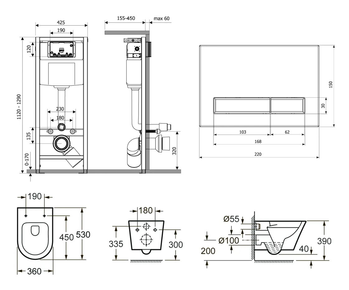 - 77050184 - Комплект инсталляции и унитаза 6 в 1 Lavinia Boho Relfix Biore Rimless (система инсталляции Relfix 38010020; удлиненный комплект креплений к стене (включено в артикул 38010020); звукоизолирующая пластина для унитаза (включена в артикул 38010020); клавиша смыва Relfix 380501MB; подвесной унитаз Biore Rimless 3304003R; быстросъемное дюропластовое сиденье с медленно опускающейся крышкой и хромированными металлическими петлями (включено в артикул 3304003R)